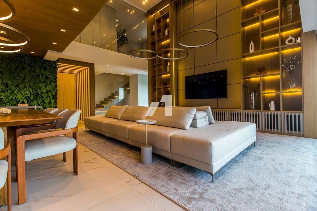 O living é amplo e imponente, com integração total entre os espaços, ideal para recepções de alto nível