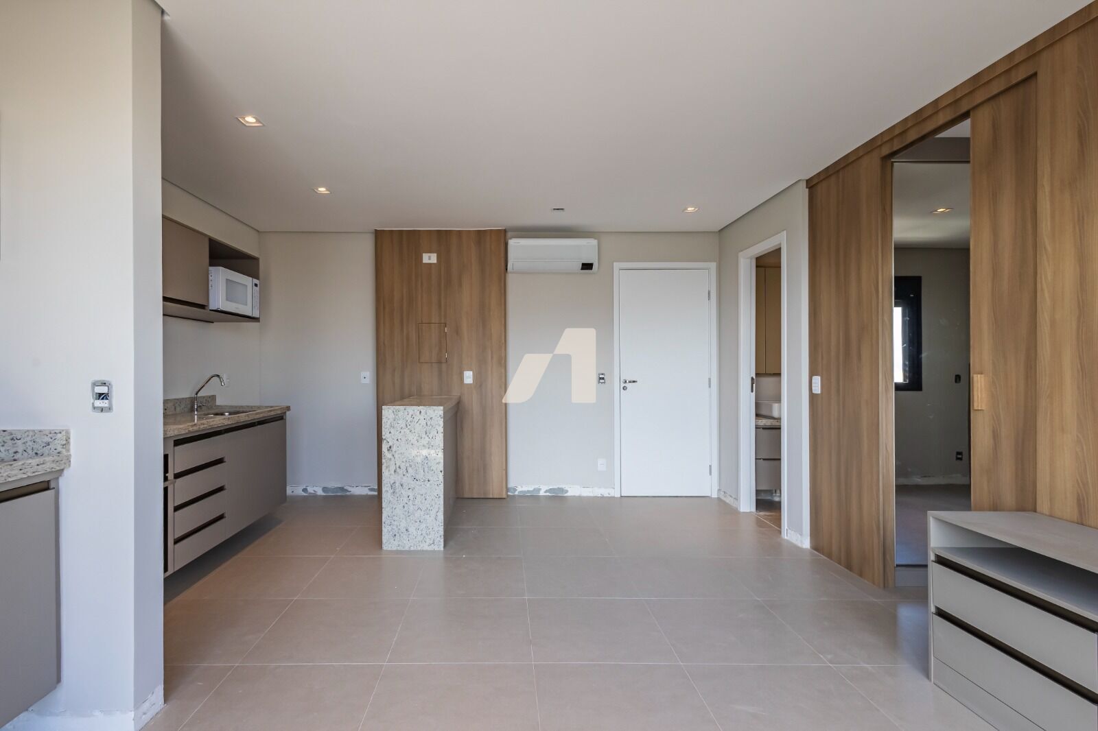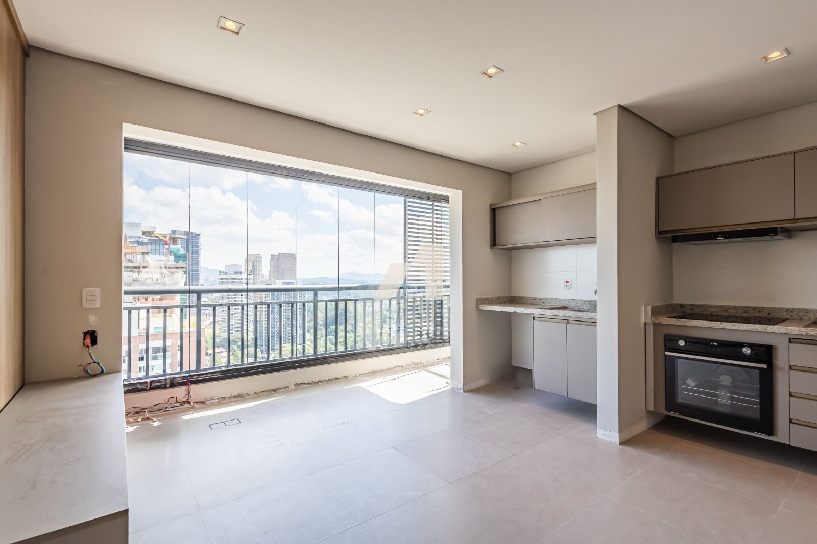 O Studio será entregue com os móveis planejados, piso, box, ar condicionado, fechamento de varanda, forro, iluminação, cozinha completa.