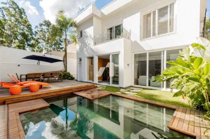 Distribuída em ambientes amplos e bem iluminados, a casa possui 4 suítes espaçosas, todas com armários planejados, banheiros modernos e varandas privativas que garantem ventilação e luminosidade natural. A suíte master impressiona com seu amplo closet e um elegante banheiro com acabamento premium, ideal para relaxar após um dia de trabalho.
