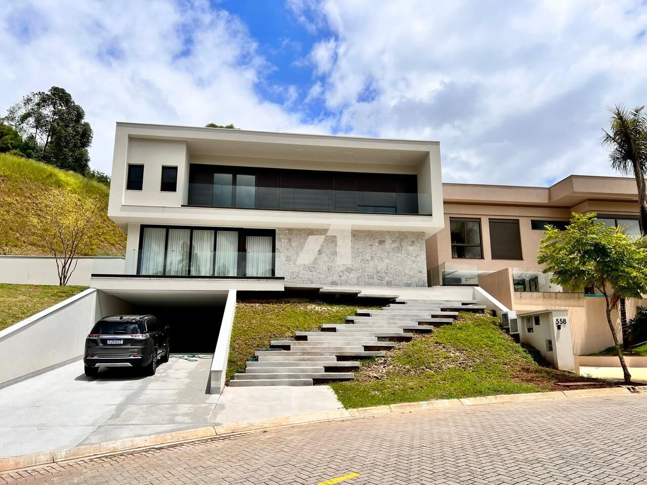 - Com 5 suítes, sendo a máster com banheira de imersão, banheiro e closet ele e ela;