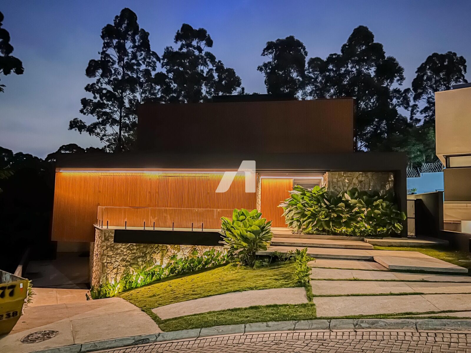 Sala de estar com pé direito duplo 6 metros, todo de vidro