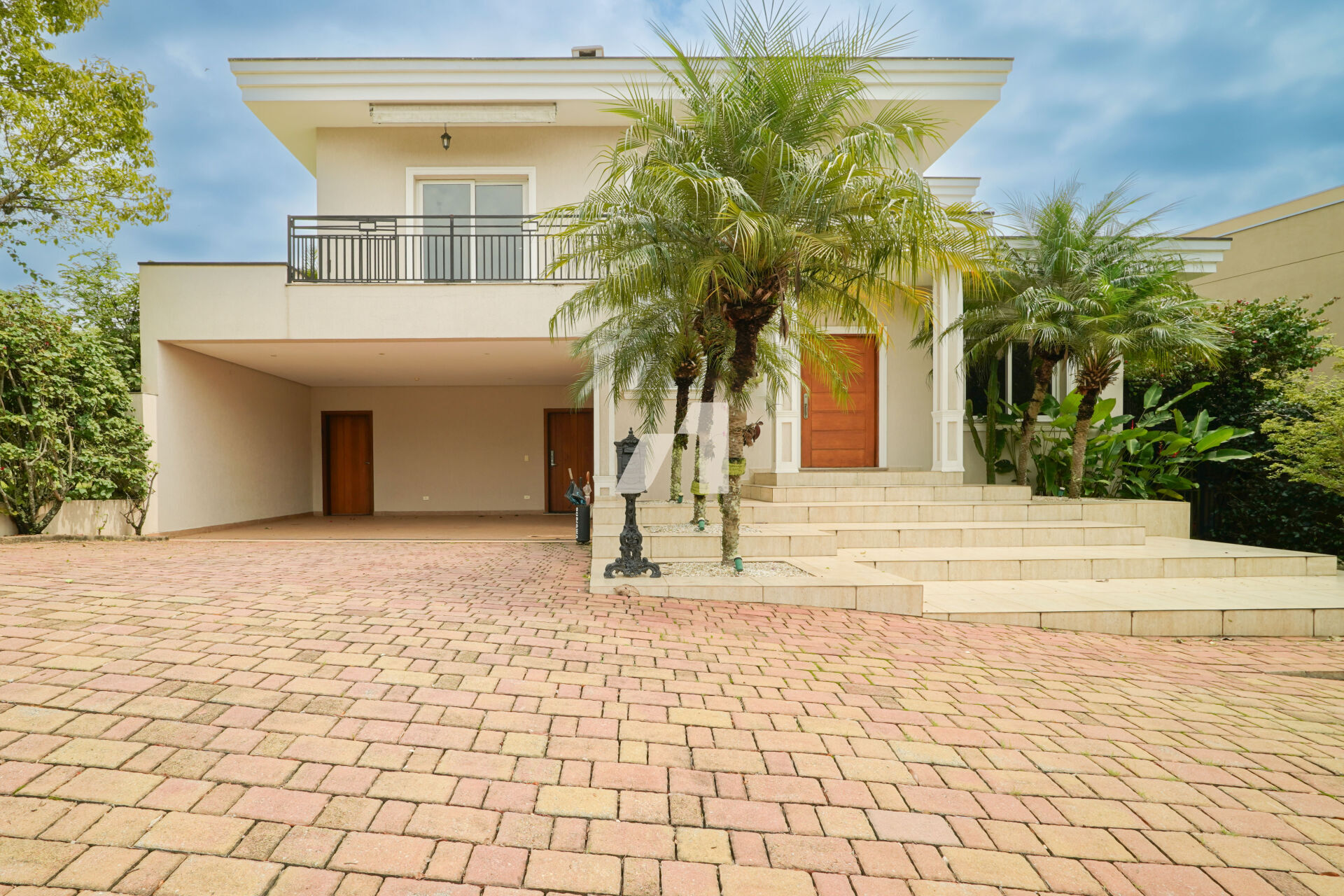 com hall de entrada, living integrado, escritório, sala de descanso com lareira à gás, lavabo, sala de TV com lareira no piso superior, 4 dormitórios com ar condicionado, sendo 01 suíte máster com amplo closet e hidromassagem, 02 suítes com os planejados.