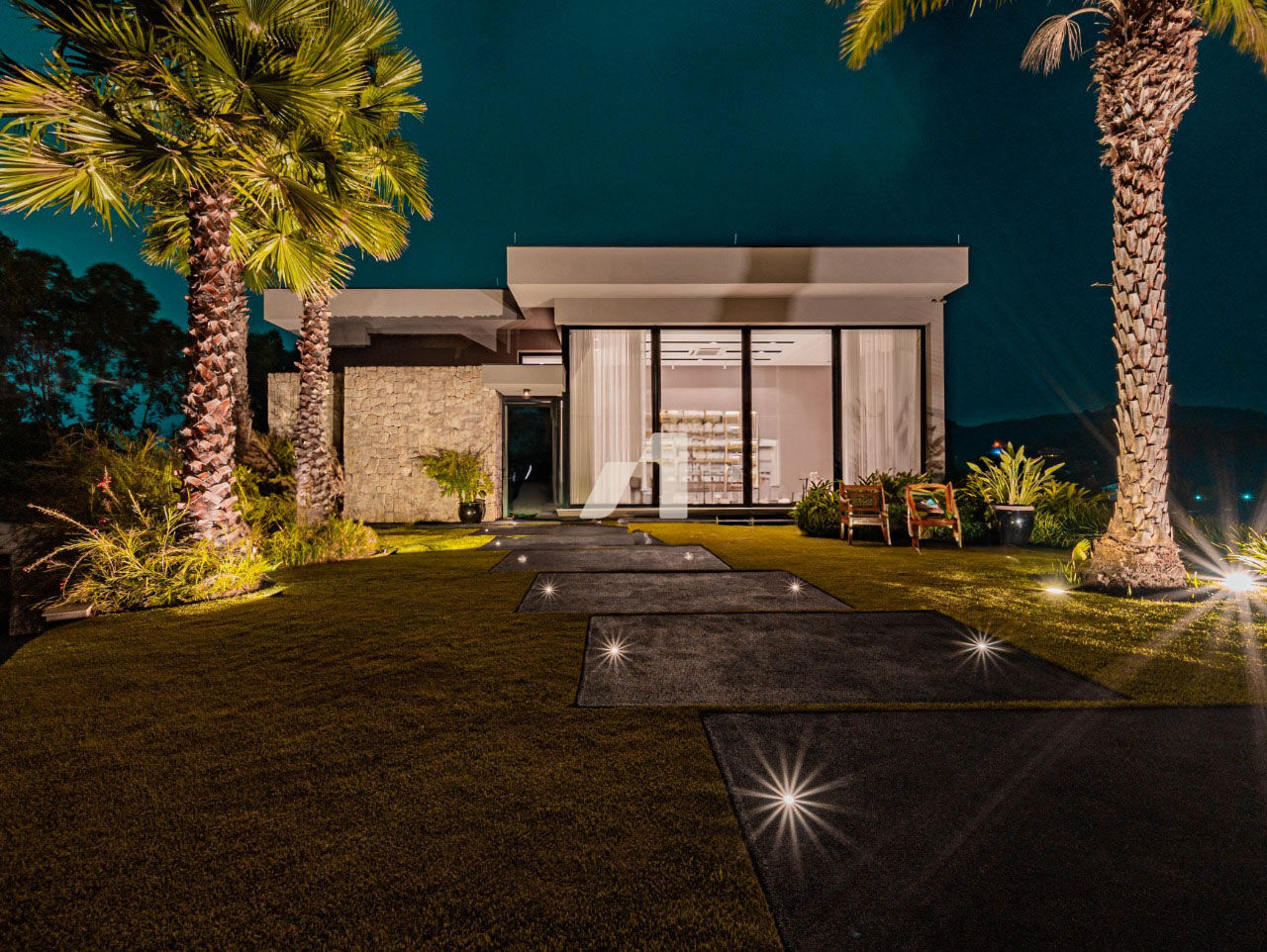 57 módulos Placa Solar; Cisterna captação água chuva; Automatizada , Elevador , Gerador cobertura de 100% da casa, Piscina aquecida borda infinita, Carregador para carros elétricos; Irrigação automática, aspiração Central Hayden, iluminação automação Scenario, áudio e vídeo e paisagismo, 15 câmeras segurança, Cozinha, closets e roupeiro Ornare